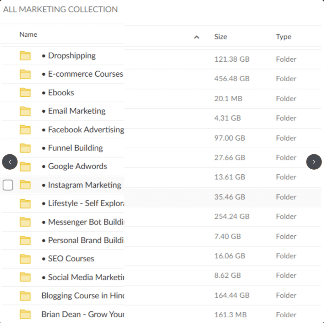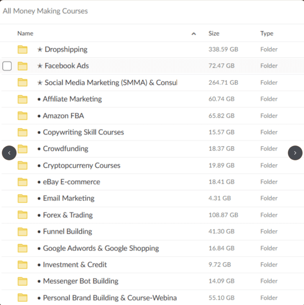 Few screenshots of the courses folder you will get instant access to